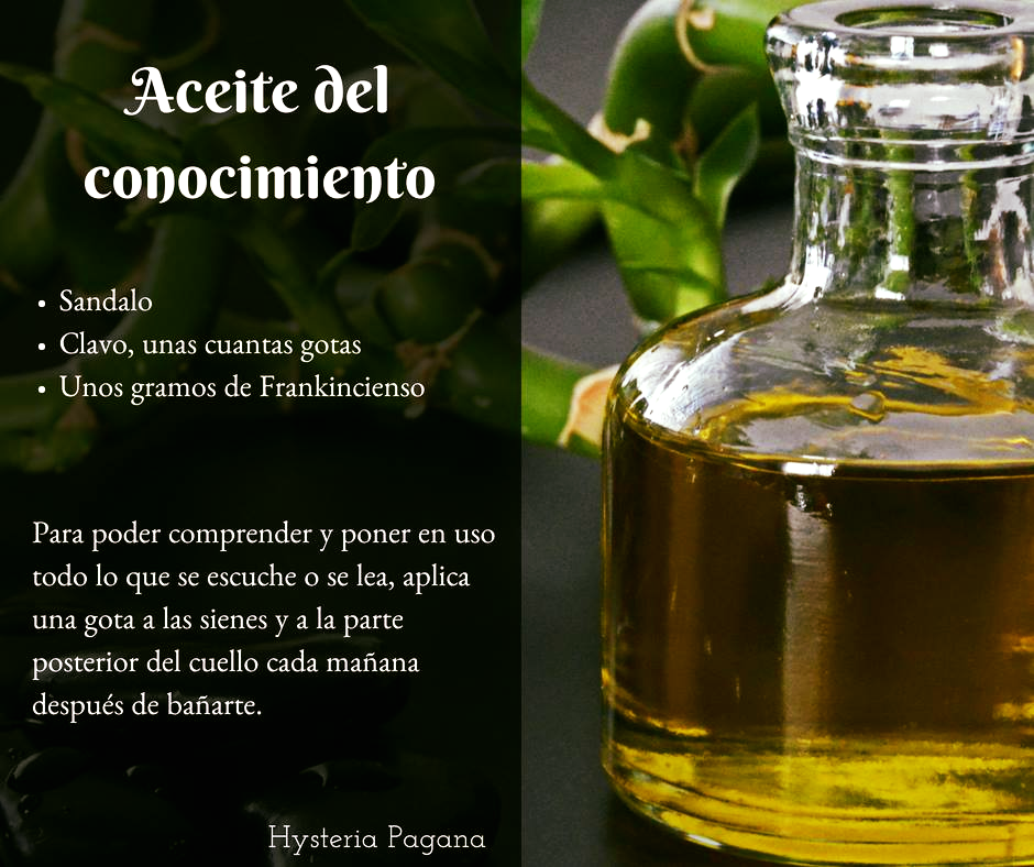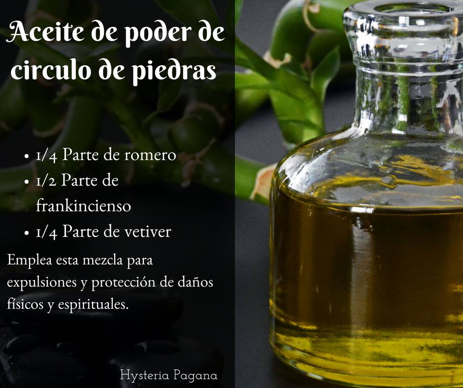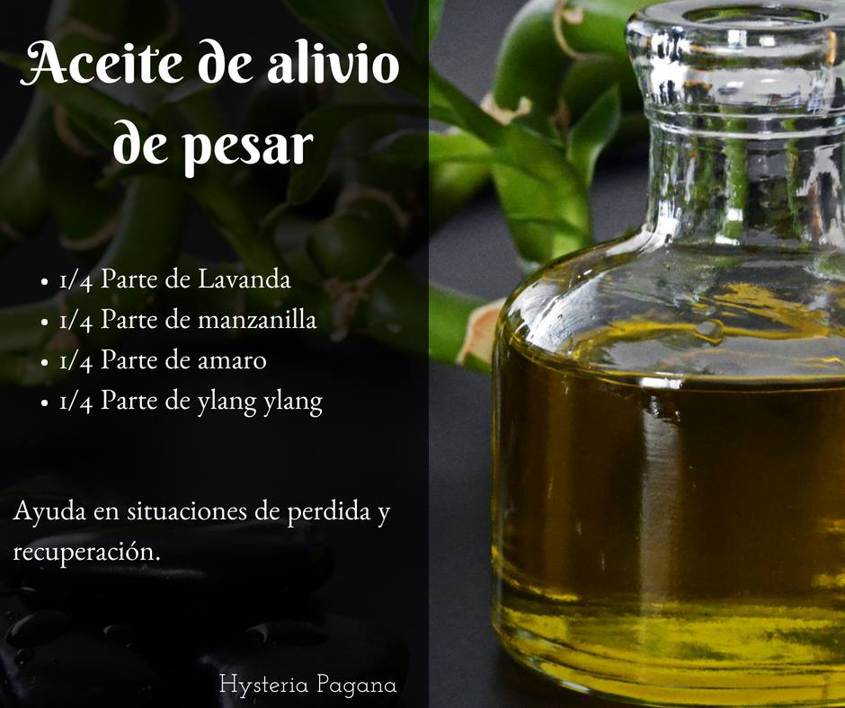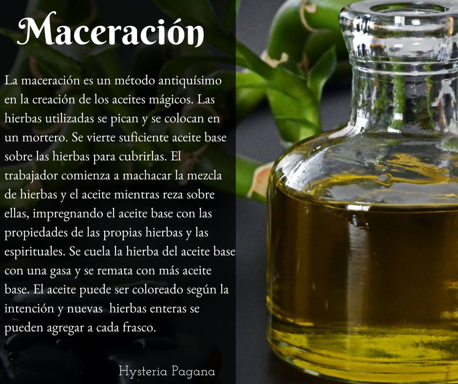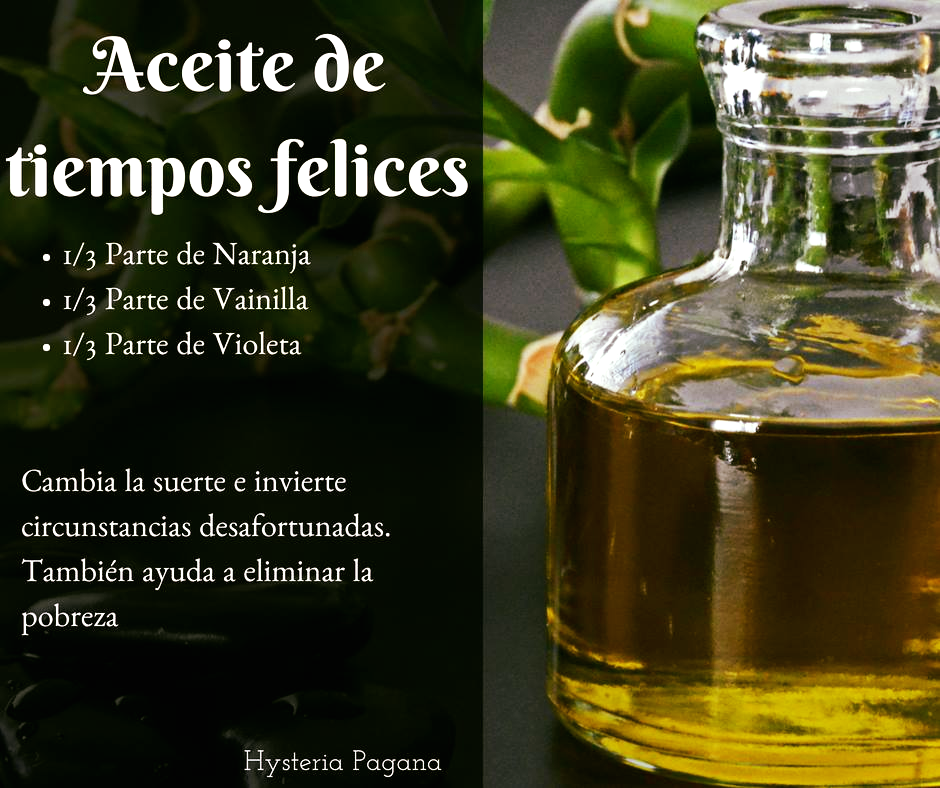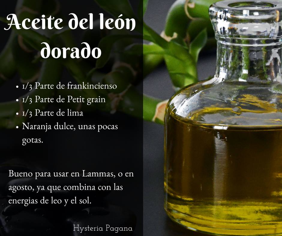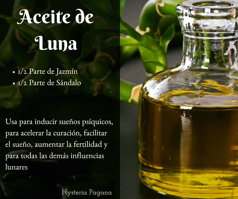 La brujería y el paganismo están llenos de ceremonias, rituales y celebraciones en tiempos de cambio que conforman la rueda del año, los cambios en la vida, así como los rituales para trabajos específicos. Estos rituales con frecuencia utilizan elementos y herramientas específicas, tales como velas, hierbas mágicas, inciensos, y, por supuesto, aceites mágicos. Todos estos tipos de herramientas poseen aspectos simbólicos que dan fuerza al evento o mejoran los resultados buscados con el hechizo o ceremonia ritual. Los aceites mágicos están asociados con el Espíritu y nos ayudan a alcanzar lo no-visible e invocar las fuerzas que necesitamos para los ritos y rituales. En relación con los aceites esenciales, los aceites mágicos, pueden ser elaborados con aceites esenciales más aceites base, por ejemplo, aceite de pepita de uva, aceite de almendras, aceite de maíz, aceite de aguacate, aceite de coco y varios más.