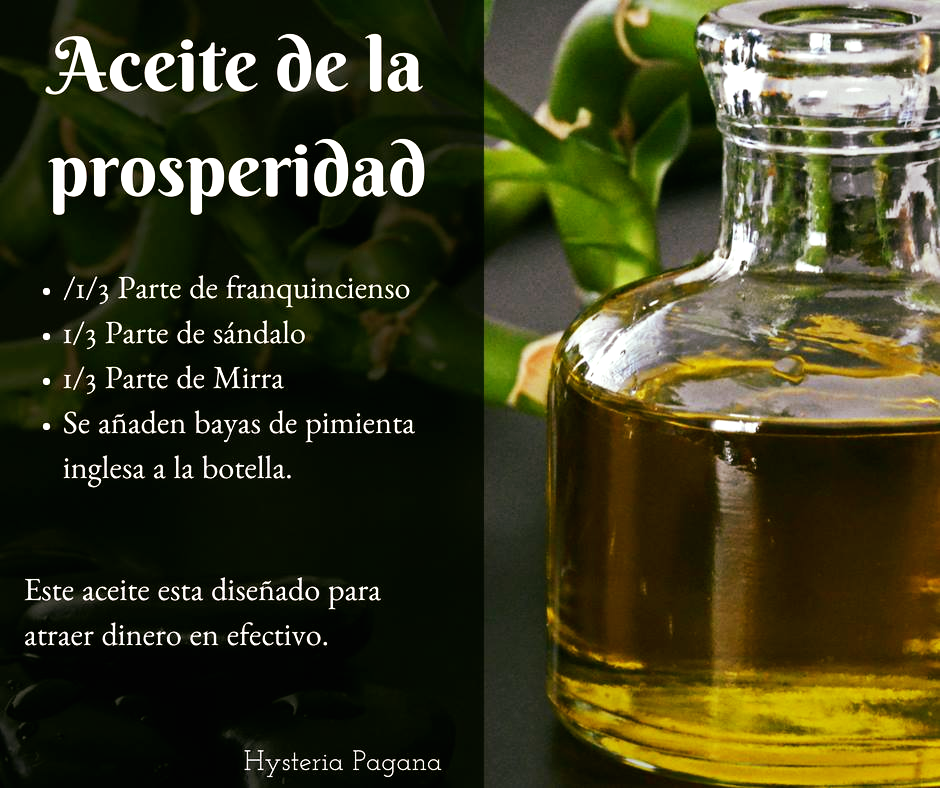 En conjunto los aceites esenciales, en combinación con diversos elementos pueden generar cambios en nuestro sistema, desde la eliminación de dolencias, malestares físicos, eliminación del estrés y la ansiedad como atraer la prosperidad, y darnos protección. Aquí les dejaremos algunos cuantos aceites mágicos para distintos propósitos: