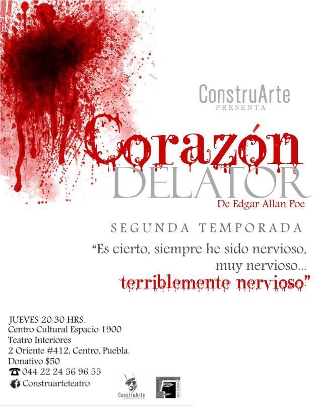 Aterradora experiencia auditiva teatralizada donde el espectador entra al teatro con los ojos vendados a percibir un cuento de terror del escritor Edgar Alan Poe. Escucha, siente, huele, percibe, pero no ve… Será testigo de un crimen… Y no podrá hacer nada… Un hombre vive con un viejo, al cual aprecia, pero ese viejo tiene un ojo parecido al de un buitre, el hombre siente rabia cada vez que el viejo lo mira, este sentir lo lleva a tomar la decisión de matar al viejo. Lo destaza y esconde debajo del piso de madera. Tres policías tocan la puerta porque han sido alertados por un vecino que escucha unos gritos. El hombre actúa con normalidad pero escucha crecientes sonidos parecidos al latido de un corazón, finalmente se desespera y termina por entregarse.