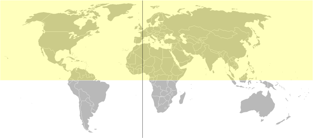 Comprende a Europa, Norteamérica, Centroamérica, el Ártico, gran parte de Asia, una parte de África, y algunas islas menores de Oceanía.