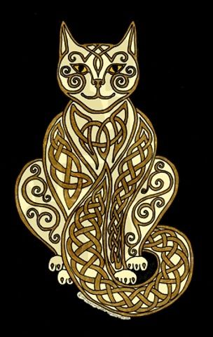 El gato representaba, en la antigua mitología Celta, el guardián del Otro mundo. Estoicos, silenciosos y misteriosos, los gatos realizaban esta función bastante bien. Mantenían los secretos del más allá para ellos eternamente, con una mirada que demostraba que los del mundo terrenal no entendían la profundidad de sus pensamientos. No solo eran guardianes, cuando eran invocados podían premiar al llamador con una variedad de conocimientos.
