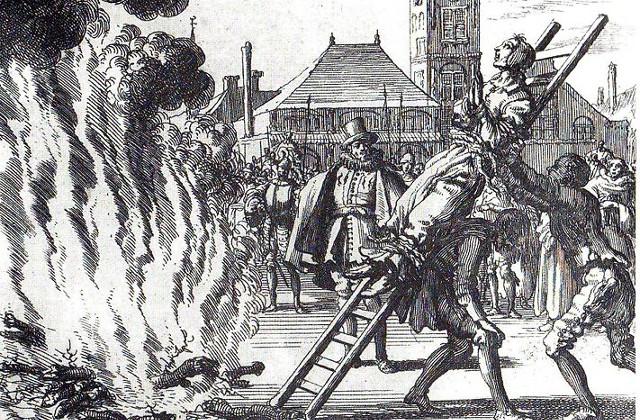 El método mas conocido de la Inquisición, con el que se ajusticiaron sobre todo a brujas. La supuesta bruja era atada a un poste de madera, con más madera para su posterior encendido, quemando así a la persona en vida ante los ojos de la multitud.