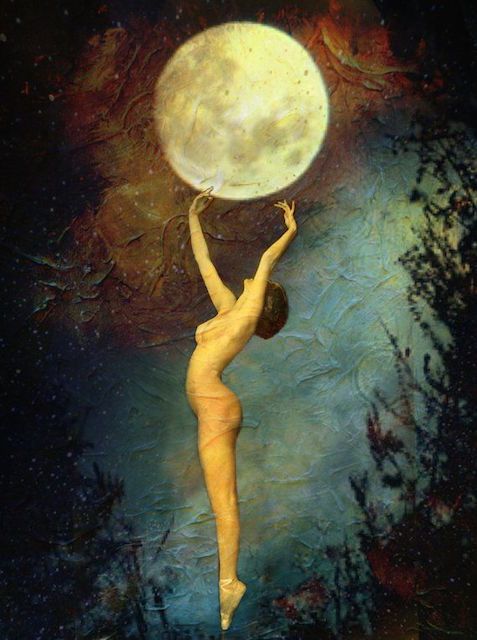 Es la doncella, la amante y la anciana, es la fiel compañera de la Tierra, la que nunca abandona, rodeando la vida orgánica del planeta. Ella es la otra. Desde la Tierra la contemplamos con admiración y, al mismo tiempo, como bruj@s la consideramos nuestro espejo. ¿Quién puede suplicar a la luna que revele sus secretos? ¿Por qué nos eligió