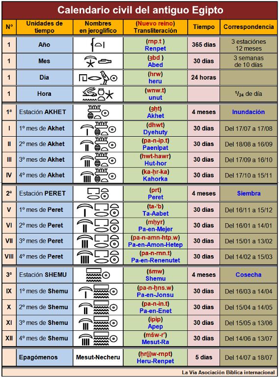 Se dice que fue también Thoth quien creo los cinco días epagómenos que permitieron el nacimiento de Osiris, Seth, Horus el Mayor, Isis y Neftis; junto al previamente mencionado calendario lunar que se empleaba para marcar los acontecimientos religiosos. Epagómenos era el nombre griego de los cinco días añadidos al ciclo de 360 jornadas para completar el año solar de 365 días. De acuerdo con Heródoto, los egipcios fueron los primeros hombres del mundo que descubrieron el ciclo del año, dividiendo su duración, para conformarlo, en doce partes. Afirmaban haberlo descubierto gracias a su observación de los astros.